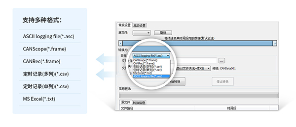 為了滿足將上云的數(shù)據(jù)轉(zhuǎn)換為用戶常用的軟件格式,CANDTU系列設(shè)備的配置軟件支持轉(zhuǎn)換各種用戶常用的軟件格式,進行分析。如圖5所示。