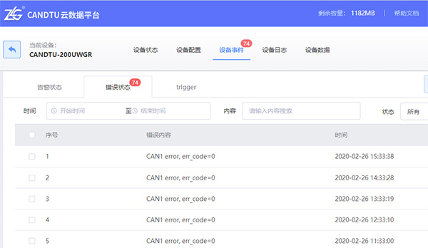 ZWS-CAN智慧云平臺可以遠(yuǎn)程對告警狀態(tài)、錯誤狀態(tài)下的數(shù)據(jù)進行下載,快速找到問題所在的數(shù)據(jù)段,可有效避免對數(shù)據(jù)進行全部下載,然后在大量的數(shù)據(jù)中去找問題,如圖 6所示。