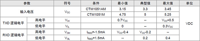 以CTM1051(A)M系列產品為例,其內部采用的CMOS技術的芯片,引腳電平如圖3,符合CMOS電平標準。在選型時,應該針對不同的MCU選擇相應型號,才能杜絕因電平不匹配產生問題,若MCU為5V供電,應選擇CTM1051M;若MCU為3.3V供電,則選擇CTM1051AM。