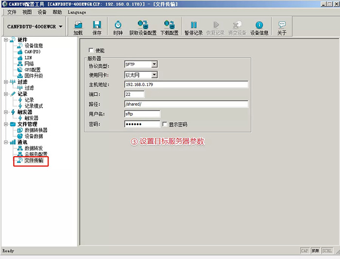 CAN(FD)DTU的SFTP功能使設(shè)備具備了將設(shè)備記錄文件完整、實(shí)時(shí)傳輸?shù)街付⊿FTP服務(wù)器的能力。SFTP是一種安全文件傳輸協(xié)議,在大多數(shù)服務(wù)器平臺有現(xiàn)成的實(shí)現(xiàn)。使用SFTP進(jìn)行CAN(FD)DTU記錄文件的傳輸免去了協(xié)議解析、數(shù)據(jù)轉(zhuǎn)存的麻煩,且SFTP協(xié)議本身支持?jǐn)嗑W(wǎng)續(xù)傳,即使網(wǎng)絡(luò)不佳或者設(shè)備下電導(dǎo)致傳輸失敗,設(shè)備端也會在網(wǎng)絡(luò)恢復(fù)或重新上電時(shí)發(fā)起重傳,大大提高了數(shù)據(jù)傳輸?shù)目煽啃浴?/p>