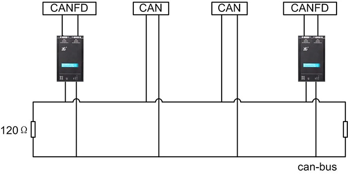 對于CAN FD的升級,如果不是全部節(jié)點(diǎn)都進(jìn)行升級,大部分整車廠都會采用先將動力域升級成CANFD,然后再進(jìn)行各個功能域的升級,所以,為了避免與CAN總線的沖突,需要首先將CAN網(wǎng)絡(luò)與CANFD節(jié)點(diǎn)的通訊打通,保證在生產(chǎn)線或?qū)嶒?yàn)室能夠進(jìn)行通訊測試。這種情況,使用CANFD網(wǎng)橋作為轉(zhuǎn)換來完成是更好的方法。如圖中所示,工程師可以不用在意如何完成CAN與CAN FD報(bào)文之間的轉(zhuǎn)換,只需要進(jìn)行一些參數(shù)的配置選擇,既可以實(shí)現(xiàn)CAN/CANFD的相互轉(zhuǎn)換,也可以將工作重心放到產(chǎn)品功能的實(shí)現(xiàn)上,降低前期測試的成本,提高使用率。