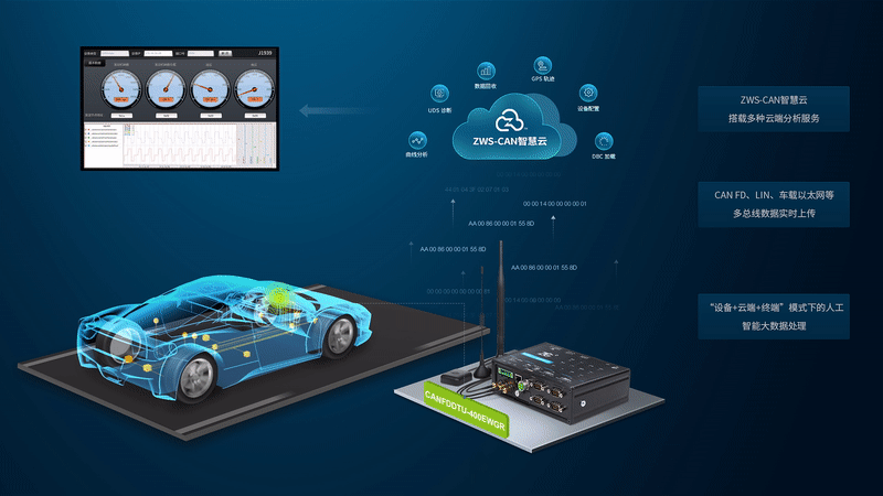 用戶可以通過ZWS-CAN云端服務(wù)器,直接對車輛進(jìn)行標(biāo)準(zhǔn)的UDS診斷,實(shí)現(xiàn)對設(shè)備的監(jiān)控。