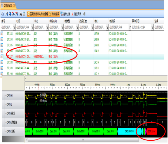 當幅值過低時,CAN節(jié)點會因為干擾導致幅值下降到0.9V以下,從而出現(xiàn)位翻轉現(xiàn)象,導致CAN總線錯誤乃至死機。