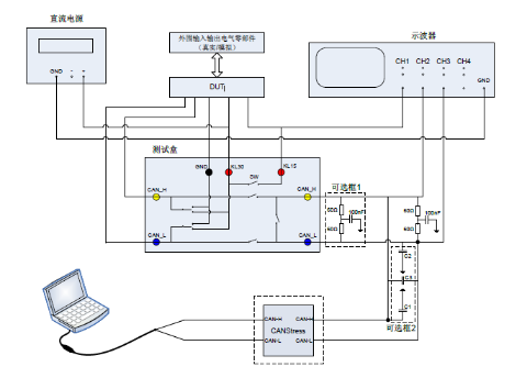 技術現(xiàn)狀:使用“示波器+CAN卡”測試組合進行CAN一致性測試,通過外接電壓源、電流源等外圍設備,手動完成測試,主要有接線復雜、測試效率低下等痛點問題。