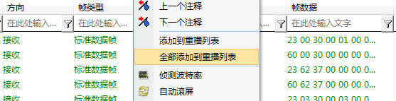 然后將報文添加到重播列表,將記錄的報文導(dǎo)入重播序列。如圖 7所示。