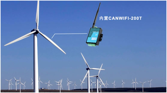 風(fēng)力發(fā)電裝置,轉(zhuǎn)動(dòng)的葉輪需針對(duì)風(fēng)扇調(diào)整葉輪角度,以往與主控制器間采用電刷連接,由于是活動(dòng)連接,經(jīng)常由于接觸不良導(dǎo)致數(shù)據(jù)丟失、傳輸不穩(wěn)定等問題,如果在每片葉輪上裝上CAN轉(zhuǎn)WIFI模塊,采用無線方式傳輸,這些問題都將不復(fù)存在。
