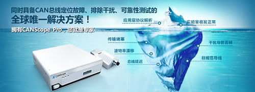 CANScope分析儀是廣州致遠(yuǎn)電子有限公司研發(fā)的一款綜合性CAN總線開發(fā)與測試的專業(yè)工具,集海量存儲示波器、網(wǎng)絡(luò)分析儀、誤碼率分析儀、協(xié)議分析儀及可靠性測試工具于一身,并把各種儀器有機(jī)的整合和關(guān)聯(lián);重新定義CAN總線開發(fā)測試方法,可對CAN網(wǎng)絡(luò)通信正確性、可靠性、合理性進(jìn)行多角度全方位的評估;幫助客戶快速定位故障節(jié)點(diǎn),解決CAN總線應(yīng)用各種問題,是CAN總線開發(fā)測試的有效工具。