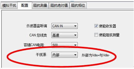 打開CANStress配置,將干擾源確定為內(nèi)部。保證CANL對地短路。如圖7所示。