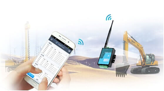 在汽車上,工程機械上,風(fēng)力發(fā)電機組上,我們只需將CANWiFi-200T與現(xiàn)場CAN網(wǎng)絡(luò)相連,即可快速接入被測設(shè)備的CAN通信網(wǎng)絡(luò),通過WiFi建立手機端與車載CAN網(wǎng)絡(luò)通信的橋梁,無需攜帶笨重的筆記本的電腦前往現(xiàn)場,即可通過隨身攜帶的智能手機,使用已開發(fā)好的APP軟件,獲取分析監(jiān)控現(xiàn)場數(shù)據(jù),快速解決問題。