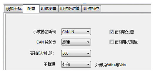 2、如圖3所示,配置干擾源為外部,然后啟動CANScope與CANScope-StressZ模擬擴(kuò)展板開始測試
