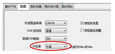 2、如圖4所示,配置干擾源為外部,便于啟用Vdis+和Vdis-的外部輸入接口。注意GND是在Vdis+和Vdis-外部輸入口中間那個接口,用于和CAN收發(fā)器的地連接。