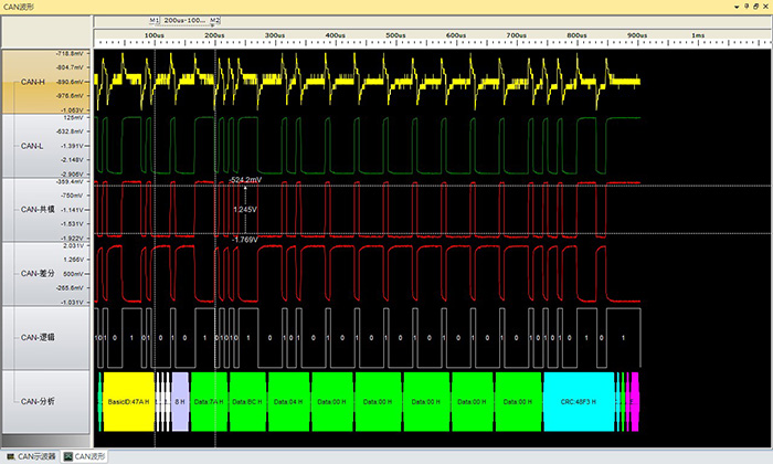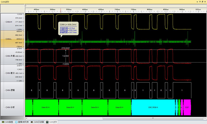 注意:圖中CAN-H的波動雖然較大,但是幅值很小哦~