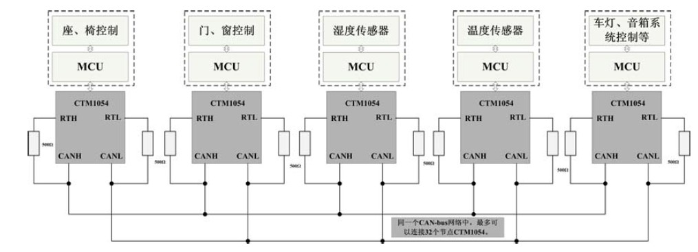 圖6 CTM1054網(wǎng)絡(luò)拓撲結(jié)構(gòu)與應(yīng)用實例