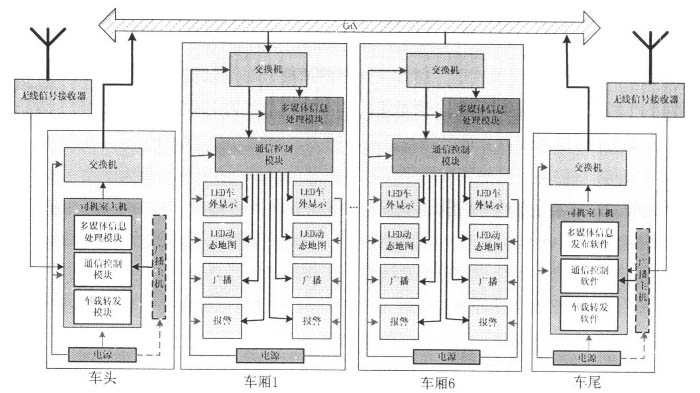 圖5 地鐵列車多媒體乘客信息系統(tǒng)結(jié)構(gòu)拓?fù)鋱D