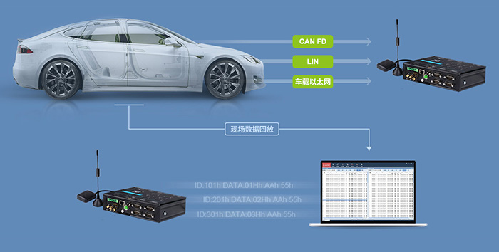 新一代智能網(wǎng)聯(lián)汽車(chē)覆蓋了車(chē)載以太網(wǎng)、CANFD以及LIN總線,在車(chē)輛測(cè)試階段,尤其是路試階段,工程師需要大量的測(cè)試數(shù)據(jù)進(jìn)行分析來(lái)判定車(chē)輛運(yùn)行情況或者故障排查。同時(shí),面對(duì)不同的車(chē)輛總線,需要不同的測(cè)試記錄方法來(lái)獲取報(bào)文,這給工程師帶來(lái)了很大的困擾。如果可以本地或者遠(yuǎn)程記錄并獲取汽車(chē)的CANFD網(wǎng)絡(luò)、LIN總線以及車(chē)載以太網(wǎng)的數(shù)據(jù),將大大降低汽車(chē)整體架構(gòu)測(cè)試的周期,降低工程師獲取測(cè)試數(shù)據(jù)難度,有助于后續(xù)車(chē)輛故障排查。