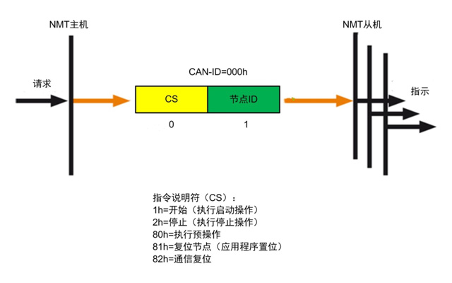 網(wǎng)絡(luò)管理系統(tǒng)(NMT)負(fù)責(zé)啟動(dòng)網(wǎng)絡(luò)和監(jiān)控設(shè)備。工程師將CANopen FD網(wǎng)絡(luò)管理系統(tǒng)設(shè)計(jì)成一種主/從系統(tǒng)。在CANopen FD網(wǎng)絡(luò)中只允許存在一個(gè)活動(dòng)的NMT主機(jī),所有CANopen FD設(shè)備都具有NMT從機(jī)功能,并且由NMT主機(jī)來啟動(dòng)、監(jiān)控、重啟,同時(shí)分配給唯一的節(jié)點(diǎn)ID。