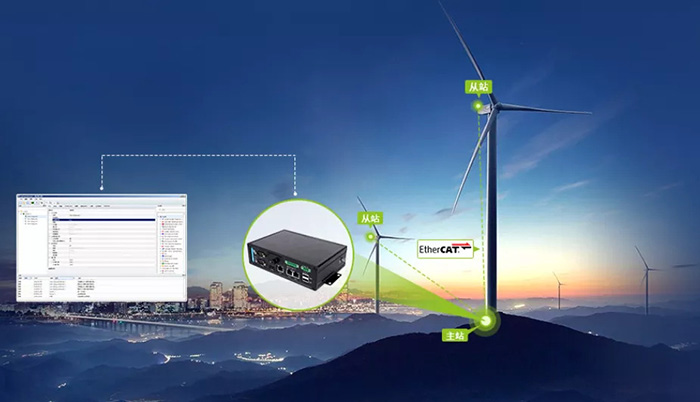 EtherCAT實(shí)時(shí)以太網(wǎng)通訊依賴其實(shí)時(shí)性高的特點(diǎn),在風(fēng)電行業(yè)已經(jīng)開始得到應(yīng)用。通過(guò)主從管理的機(jī)制,能夠有效的管理風(fēng)電機(jī)組,實(shí)時(shí)地了解各風(fēng)機(jī)的狀態(tài)。EtherCAT-100M是致遠(yuǎn)電子推出的一款多功能EtherCAT主站控制器設(shè)備,總線傳輸速率可達(dá)100Mb/s,可實(shí)現(xiàn)閉環(huán)伺服系統(tǒng)的實(shí)時(shí)控制與實(shí)時(shí)數(shù)據(jù)傳輸,集成2路EtherCAT接口,具有線纜冗余的機(jī)能。