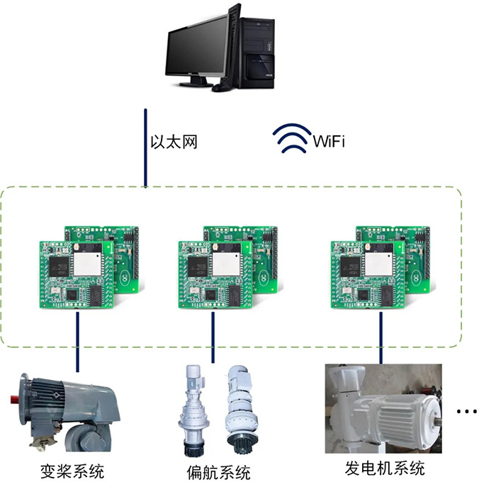 節(jié)點(diǎn)故障一般是變槳控制板造成的,為了方便工程師調(diào)試,可以變槳控制板上預(yù)留出WiFi接口。ZLG致遠(yuǎn)電子基于此行業(yè)應(yīng)用需求,推出有線和無(wú)線的模塊監(jiān)控方案。如圖所示,將WZNE-1100模塊安裝在風(fēng)機(jī)控制板上,即可輕松實(shí)現(xiàn)以太網(wǎng)/WiFi轉(zhuǎn)串口數(shù)據(jù)的互聯(lián)互通,這也是本文的重點(diǎn)所在。
