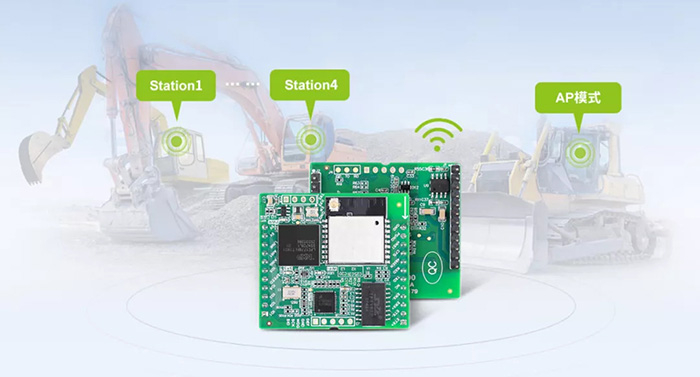嵌入式以太網(wǎng)/WiFi轉(zhuǎn)串口模塊可選擇2.4G WiFi工作模式,支持STA(Station)和AP形態(tài),作為AP時(shí)最大支持4個(gè)STA。