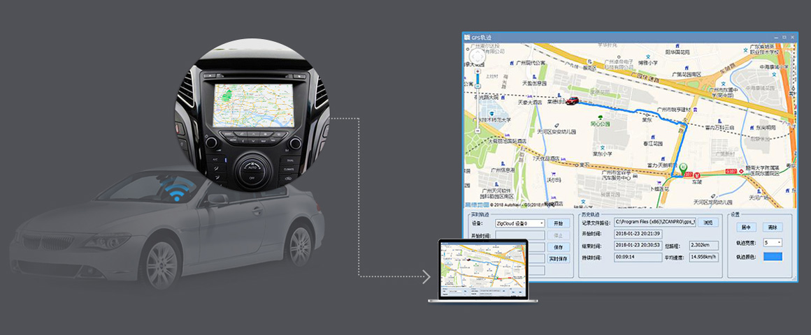 登陸CANDTU云端,可實時顯示設(shè)備運行軌跡,加載歷史軌跡。