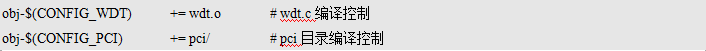 是否編譯wdt.c文件,或者以何種方式編譯,取決于內(nèi)核配置后的變量CONFIG_WDT值:如果在配置中設(shè)置為[*],則靜態(tài)編譯到內(nèi)核,如果配置為[M],則編譯為wdt.ko模塊,否則不編譯。 說(shuō)明:受控目標(biāo)是一個(gè)目錄,obj-y并不直接決定受控目錄的文件以及子目錄的文件,僅僅是與受控目錄Makefile交互,實(shí)際編譯控制在受控子目錄的Makefile中。例如“obj-y+= gpio/”,最終gpio目錄下哪些文件被編譯,完全取決于gpio目錄下的Makefile?!皁bj-$(CONFIG_PCI) += pci/”的含義同理。