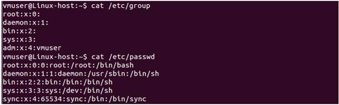 圖3文件權(quán)限 用戶和用戶組的信息分別在/etc目錄下的passwd、group文件內(nèi),可以使用cat命令直接讀取。