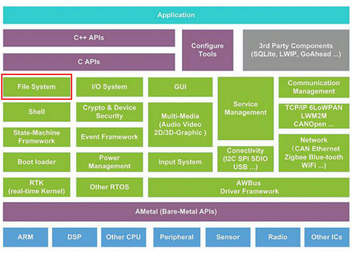 文件系統(tǒng)在AWorks系統(tǒng)中的位置見下圖:
