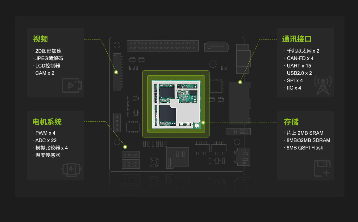 通訊接口包括了2路千兆以太網(wǎng),15路UART,2路USB2.0,以及4路CANFD、SPI、IIC。