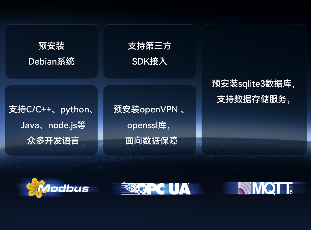 支持多種工業(yè)協(xié)議Modbus TCP/RTU協(xié)議、OPC UA協(xié)議等
