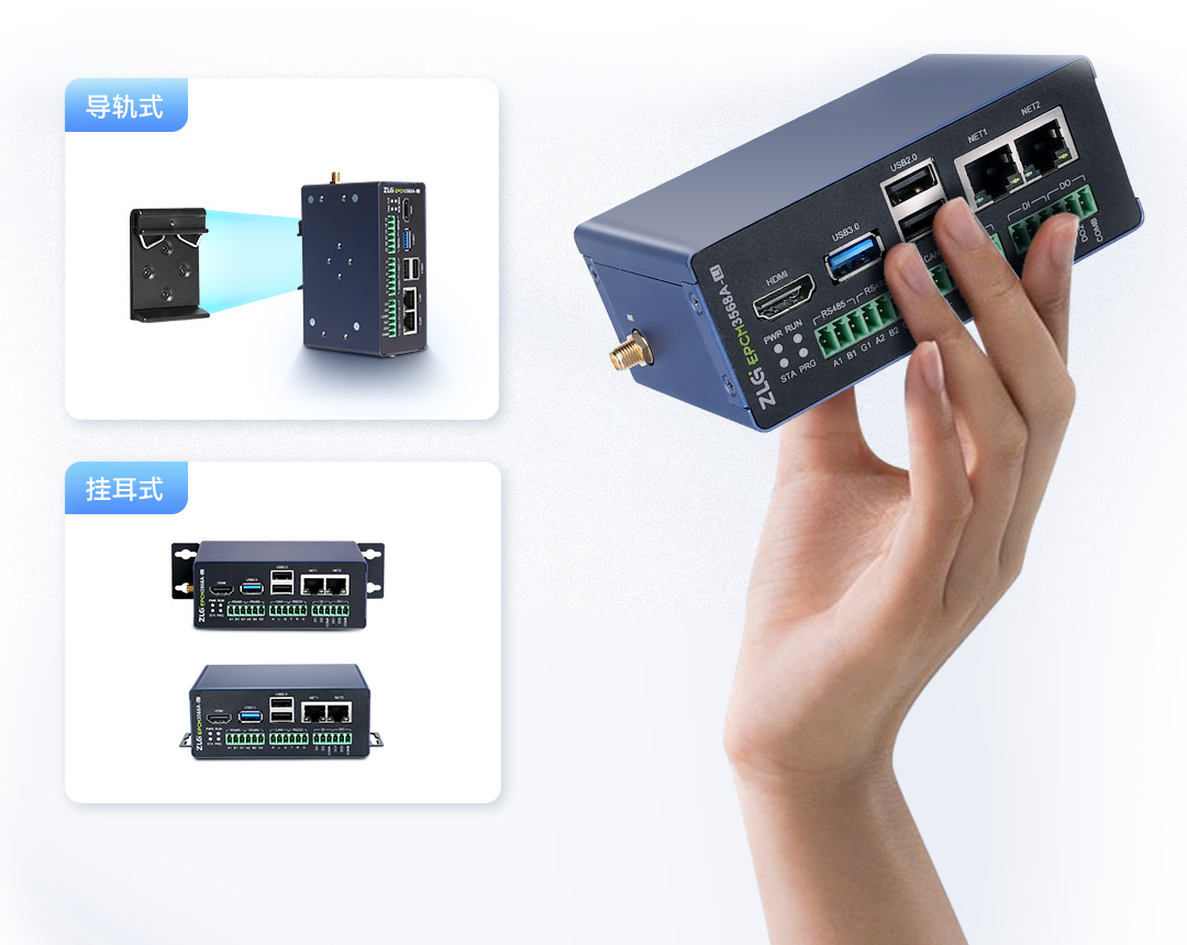 EPCM3568A-LI具有小巧精致的外觀,安裝方式支持導軌式和掛耳式兩種,非常方便用戶的靈活使用安裝。