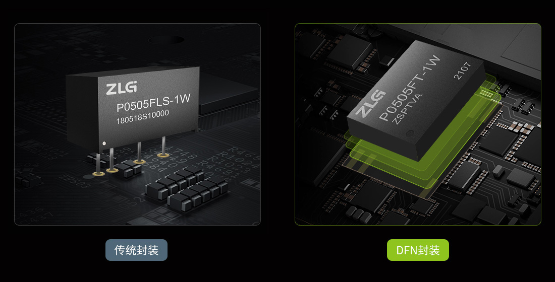 ZLG基于近二十年的電源設計經驗積累,采用成熟SiP工藝打造出P系列全工況隔離DC-DC電源芯片,實現更高的集成度。產品體積僅為9.00*7.00*3.00mm,相較于傳統(tǒng)模塊產品體積縮小近75%,為用戶小型化升級提供支持。