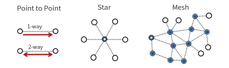 圖5 ZigBee點(diǎn)對點(diǎn)、星型、網(wǎng)狀網(wǎng)絡(luò)拓?fù)浣Y(jié)構(gòu)
