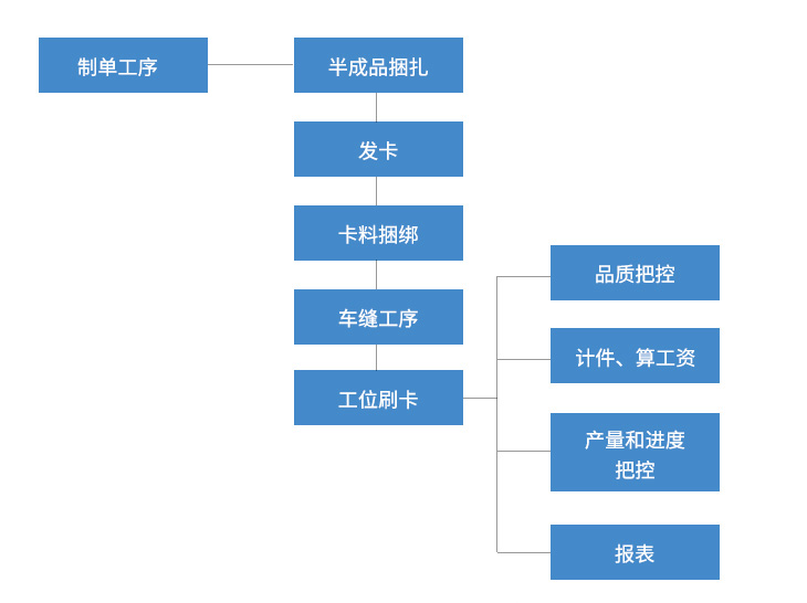 采集系統(tǒng)先通過RFID卡捆綁上生產(chǎn)車間的半成品和車間工人的識別碼,工人每做完一道工序就讀取RFID卡上的信息錄入系統(tǒng),能夠?qū)γ恳慌浳锏倪M度、流向進行實時的監(jiān)控。