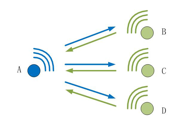 2、如圖 8所示,主從模式(一點對多點)通訊,只需將B、C、D等從機節(jié)點的目標節(jié)點地址指向主節(jié)點A,同時A設(shè)置成廣播,或者用一條切換目標地址(無須重啟)指令,即可實現(xiàn)A-B、C、D等節(jié)點的多點數(shù)據(jù)透傳。同理設(shè)置只用使用配套的FastZigBee配置軟件即可。
