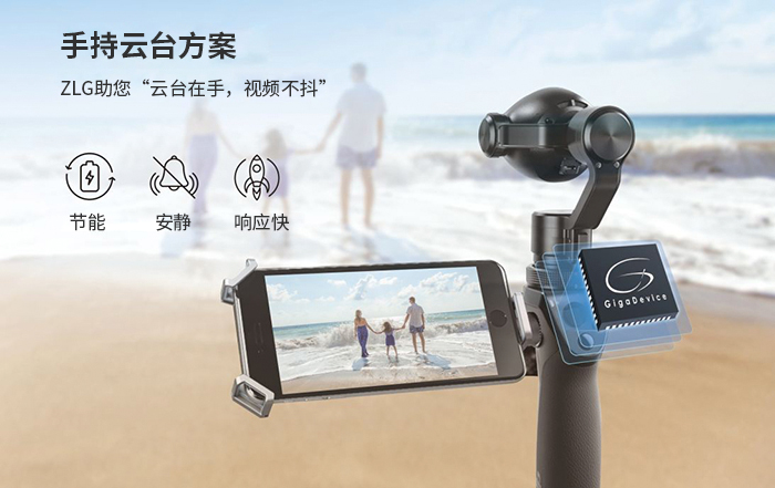手持云臺通過藍牙模組與手機相連,借助手機內(nèi)部的陀螺儀識別手機的晃動方向。通過MCU進行數(shù)據(jù)處理,控制電機做出相應(yīng)的動作。其中最為關(guān)鍵的是ZLG自主電機驅(qū)動庫ZLG-FOC,采用先進的無感FOC技術(shù),具有節(jié)能、安靜、響應(yīng)快等優(yōu)點。
